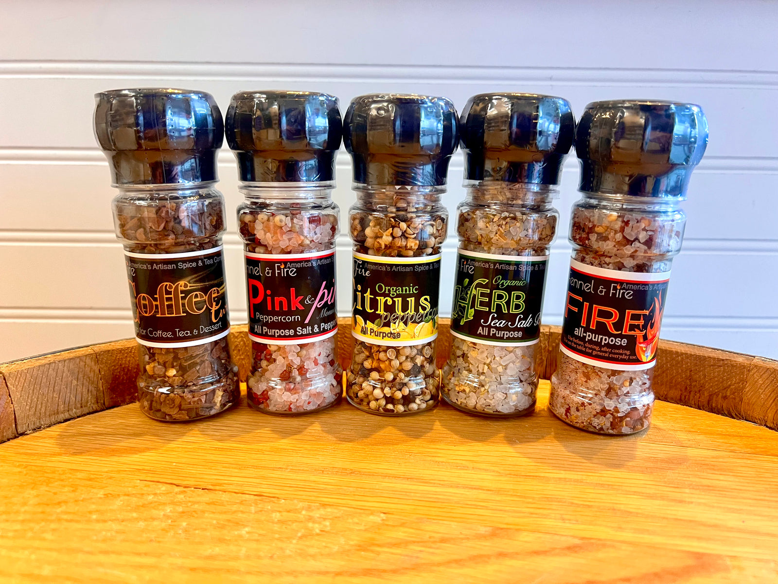 Designed for grinding fresh, our large-grain salts and spices deliver bold flavor and aroma with every twist. These are finishing blends—made to elevate food right at the moment it matters most.
