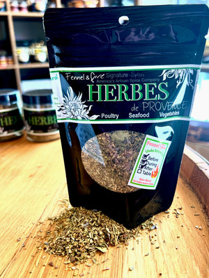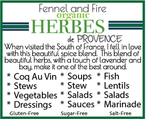This salt-free Herbes de Provence blend brings the heart of Southern France to your table with a fragrant mix of organic thyme, organic rosemary, organic savory, organic marjoram, and a whisper of organic lavender. For a quick French flair, mix with olive oil and brush on roasted chicken or toss with baby potatoes before roasting. Also great as a seasoning for the classic coq au vin, sprinkled over fish or potatoes before baking, or season winter warming soups and stews.