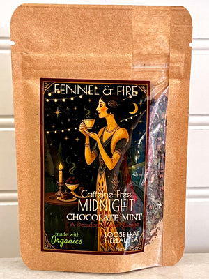Sink into the velvety richness of Midnight Mint Chocolate Tea: a soothing caffeine-free blend of rich sweet honeybush wrapped in the comforting flavors of cool peppermint and dark cocoa from cocoa nibs. Hints of creamy vanilla and a whisper of spice give it truffle-like depth, making it the perfect evening indulgence or after-dinner treat—without guilt or caffeine. Add a splash of milk and sugar for a decadent delight!